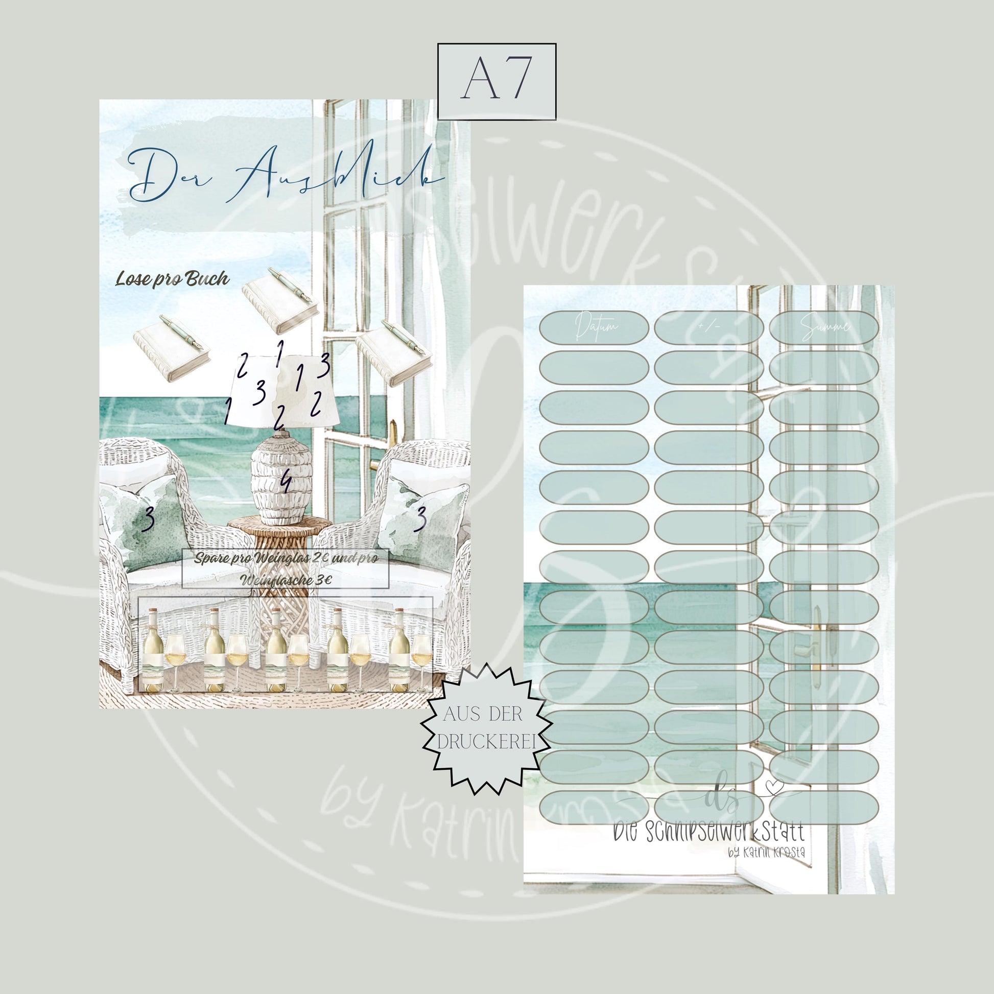 Challenge A7!! Urlaub !!! Den brauchen wir ja immer alle schon eher dringender =) Mit dieser kleinen aber feinen Challenge kannst du dir ein nettes Sümmchen für den nächsten Urlaub zusammensparen. Gedruckt werden die Sparchallenges auf hochwertigem Papier mit 350g-400g, teilweise matt foliert und gelocht. Ihr erhaltet: * eine Challenge A7 Bitte bedenkt, dass es aufgrund von unterschiedlichen Bildschirmeinstellungen zu Farbabweichungen kommen kann. Papiermaterialen (Challenges, Deckblätter, Planer usw.) Diese Produkte sind nicht hitzebeständig und dürfen nicht in der Nähe von offenen Feuer, heißen Oberflächen oder anderen Wärmequellen verwendet werden. Papier verfügt ggf. scharfe Kanten, an welchen eine Verletzungsgefahr durch Schneiden bestehen kann Anhänger, Lose, Würfel und andere Kleinteile Kleinteile können verschluckt werden Diese Produkte sind nicht für Kinder unter 3 Jahren geeignet. Produkte können spitze Bestandteile enthalten, an denen man sich verletzen kann. Kann Allergien hervorrufen, bitte vorab über die eigenen Allergien bei Materialien informieren. Artikelnr.:B066 Der Ausblick Hersteller: Die Schnipselwerkstatt Marke: Die Schnipselwerkstatt Material: 400gr papier, matt Anschrift: Katrin Krosta Brunnenstr. 34 32756 Detmold Email: kontakt@die-schnipselwerkstatt.de